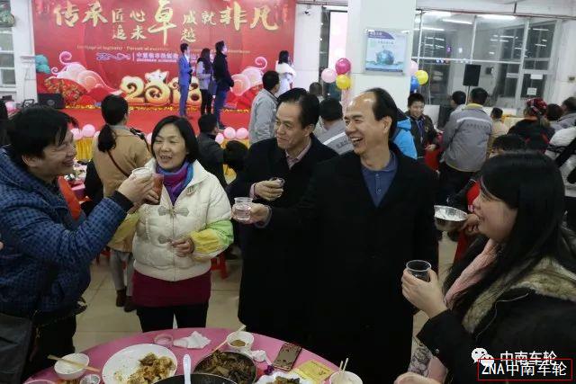 夜幕降臨,華燈初上。佛山市南海區(qū)獅山工業(yè)園區(qū)內(nèi)中南鋁車輪制造(佛山)有限公司【下稱“中南車輪(佛山)公司”】員工餐廳內(nèi),歡快的旋律已響起,2018年2月5日,中南車輪(佛山)公司2018年迎春晚宴的序幕正在夜幕下緩緩拉開。集團(tuán)總裁、中南車輪董事長梁權(quán)輝先生攜集團(tuán)一眾領(lǐng)導(dǎo)、中南車輪高層出席了當(dāng)天晚宴。