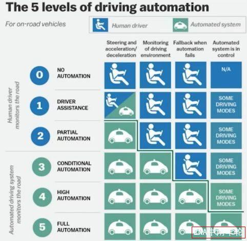 L0-L1是純粹的人工駕駛,意味著司機(jī)對(duì)駕駛負(fù)全責(zé);L2-L3是機(jī)器輔助人工駕駛的車(chē)輛,仍是司機(jī)對(duì)駕駛負(fù)全主責(zé),但有機(jī)器輔助,機(jī)器會(huì)承擔(dān)一部分責(zé)任,一般稱(chēng)這個(gè)級(jí)別為輔助駕駛;L4-L5是自動(dòng)駕駛,司機(jī)不用負(fù)責(zé)駕駛,而由車(chē)輛自行駕駛。L4和L5的區(qū)別是區(qū)域的區(qū)別,L4為有限范圍,譬如只在一些省市里,而L5則不限區(qū)域,全球通用。