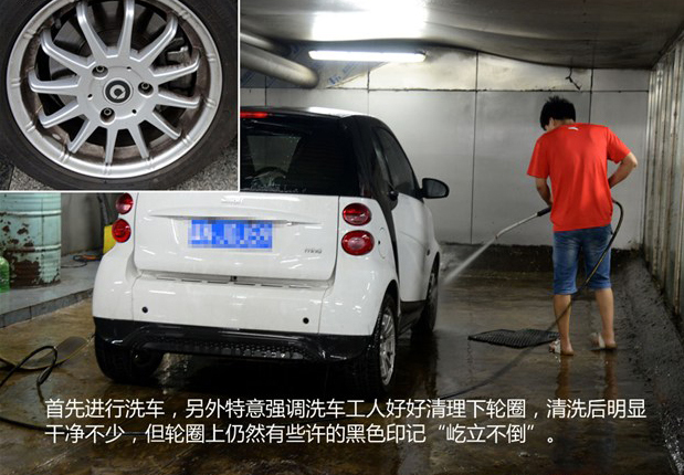 在這里要說一個問題,就是目前很多的洗車工人對于輪圈等細(xì)節(jié)問題并不在意,簡單抹一把就算完事兒了,所以導(dǎo)致輪圈久而久之的變黑發(fā)黃。所以在必要的時候,我們需要監(jiān)督并督促洗車工人仔細(xì)擦洗干凈。小編在洗車房的時候,經(jīng)常會自己動手,擦一下不被注意的角落。