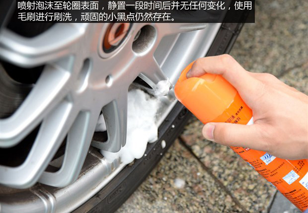 只需噴灑至輪圈,靜置10秒鐘后擦出洗劑即可,嚴(yán)重污漬也需毛刷進(jìn)行清洗