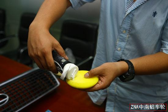 2、按一定順序往復(fù)直線涂抹,注意不要涂到車漆上面。